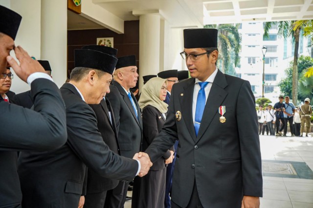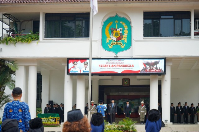 Rabu, 01 Oktober 2025, 19:41:13 Dibaca 21 Kali Wali Kota Medan, Rico Tri Putra Bayu Waas, Memimpin Upacara Peringatan Hari Kesaktian Pancasila Tahun 2025, di Halaman Kantor Wali Kota Medan, Rabu (1/10/2025)